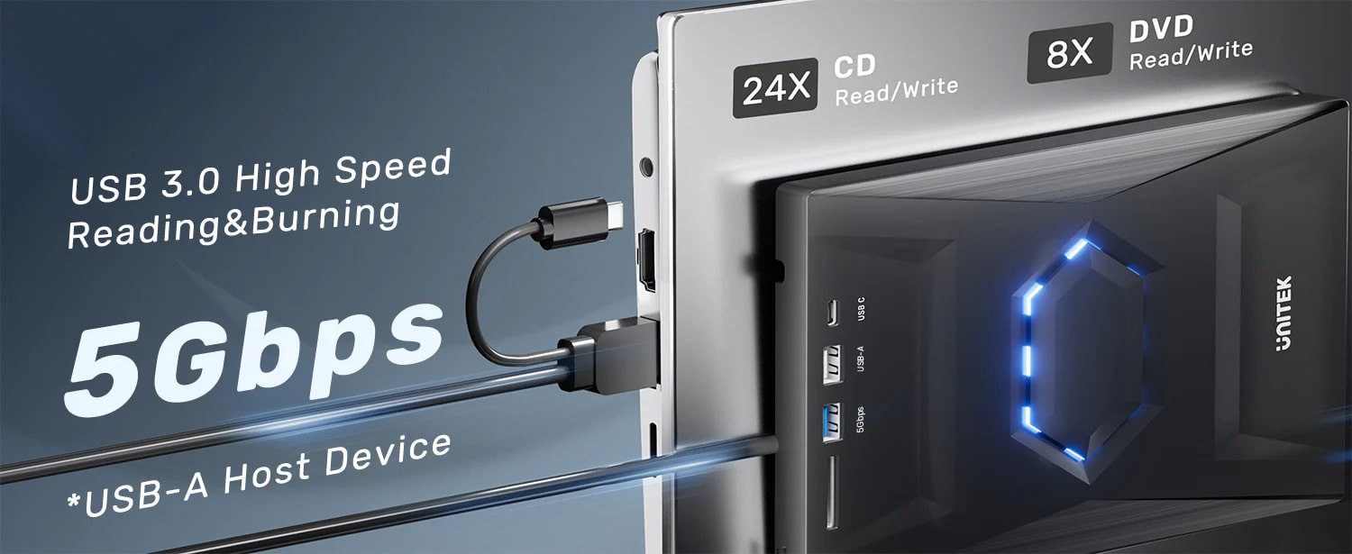 UNITEK HARİCİ DVD-RW USB TYPE-C/A 5in1 DOCK (T1037A)