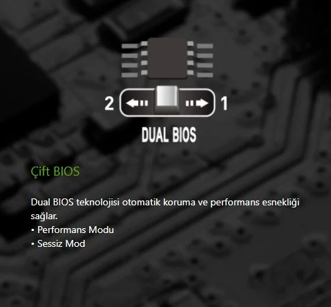 Dual BIOS teknolojisi otomatik koruma ve performans esnekliği sağlar.• Performans Modu